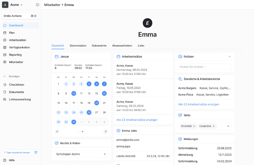Mit Ordio sparst du manuelle Verwaltungsarbeit, verhinderst Fehler bei der Lohnabrechnung und erhältst durch transparente Auswertungen wertvolle Insights, um dein Personalbudget optimal zu steuern. So wird Personalmanagement digital, effizient und stressfrei, während du dich voll auf die Qualität deiner Dienstleistungen konzentrieren kannst.