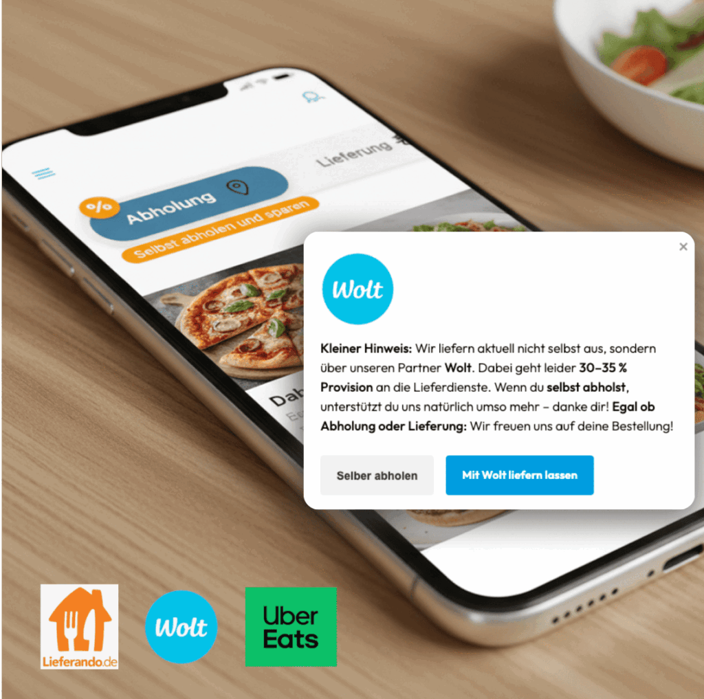 Konkrete Zahlen: Digitale Bestellwege bringen Dir Zusatzumsatz. Gemeinsam mit Bringmal erstellen wir Dir deinen eigenen personalisierten Webshop kostenlos. Mit Bringmal sparst du zudem die üblichen Plattform-Provisionen von Lieferando; Wolt; UberEats und behältst mehr Marge pro Bestellung. Mit einer fixen Monatslizenz hast Du deine Kosten unter Kontrolle. Bringmal unterstützt dich zusätzlich mit Marketing-Material und hilft dir entscheidend dabei dein Google Ranking zu optimieren um Bestellungen gezielt zu pushen.